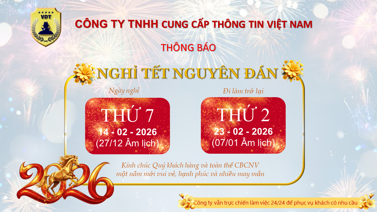 Thông báo lịch làm việc Tết Nguyên Đán Bính Ngọ năm 2026